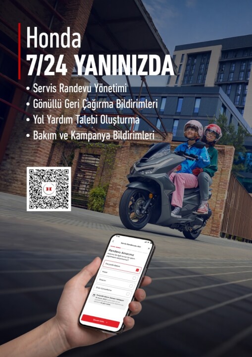 Honda, motosiklet kullanıcılarının tüm ihtiyaçlarını tek bir dijital platform üzerinden kolay ve kesintisiz şekilde yönetebilmelerini sağlamak amacıyla Honda Yanımda mobil uygulamasını kullanıma sundu. Honda Yanımda; servis randevusu oluşturma, servis sürecini anlık takip etme ve yolda kalma durumunda çekici hizmeti talebi gibi temel hizmetleri tek bir çatı altında toplarken, kullanıcıya özel satış ve servis kampanya önerileriyle kişiselleştirilmiş bir deneyim sunuyor. Uygulama, iOS ve Android işletim sistemine sahip akıllı telefonlardan ücretsiz olarak indirilebiliyor.